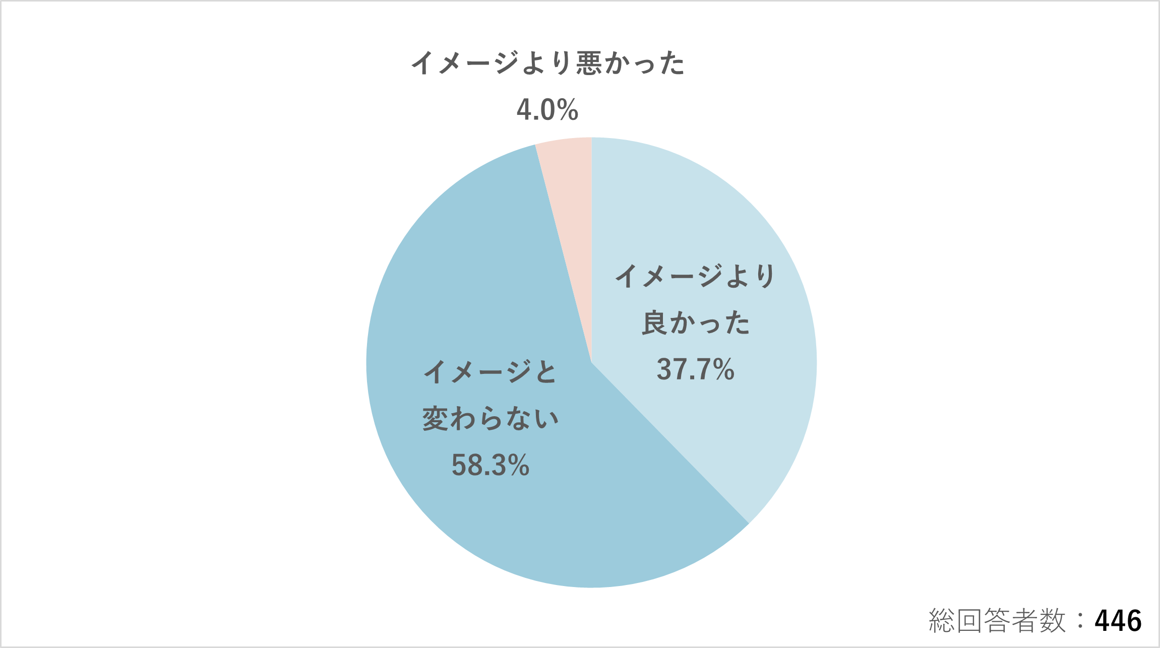 実際に働いてみて、96%以上の新入社員が採用時にイメージした仕事より良い、またはイメージ通りだったと回答しています。